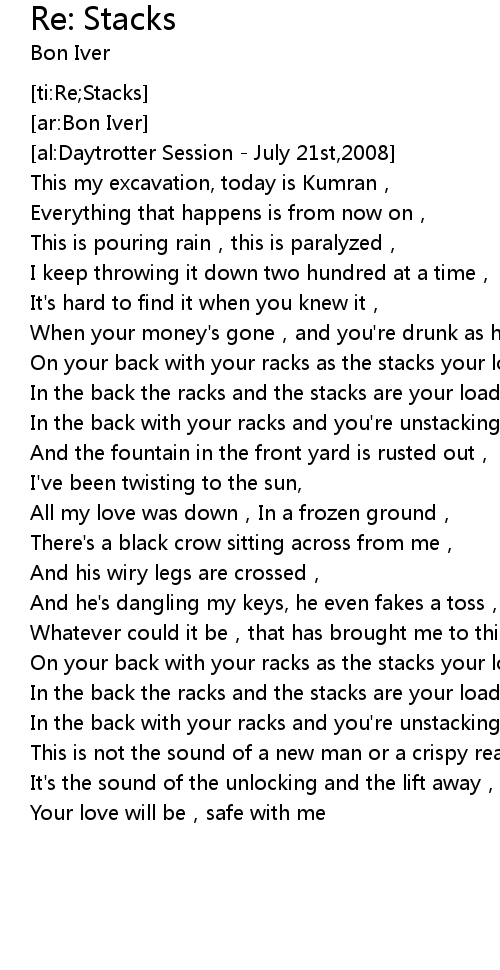 | [04:37.94] | In the back the racks and the stacks are your load, |