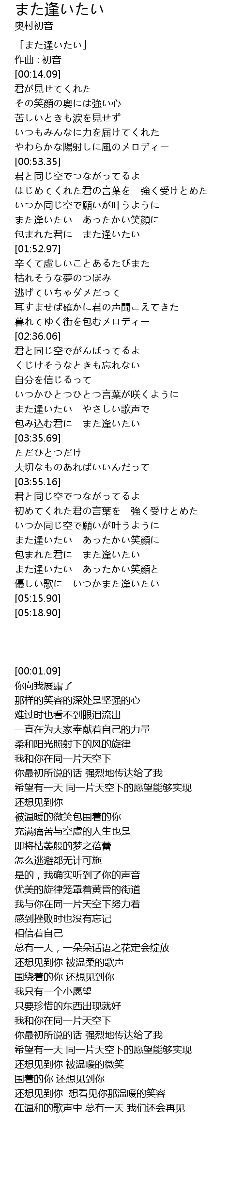 | [03:20.04] | また逢いたい やさしい歌声で |
