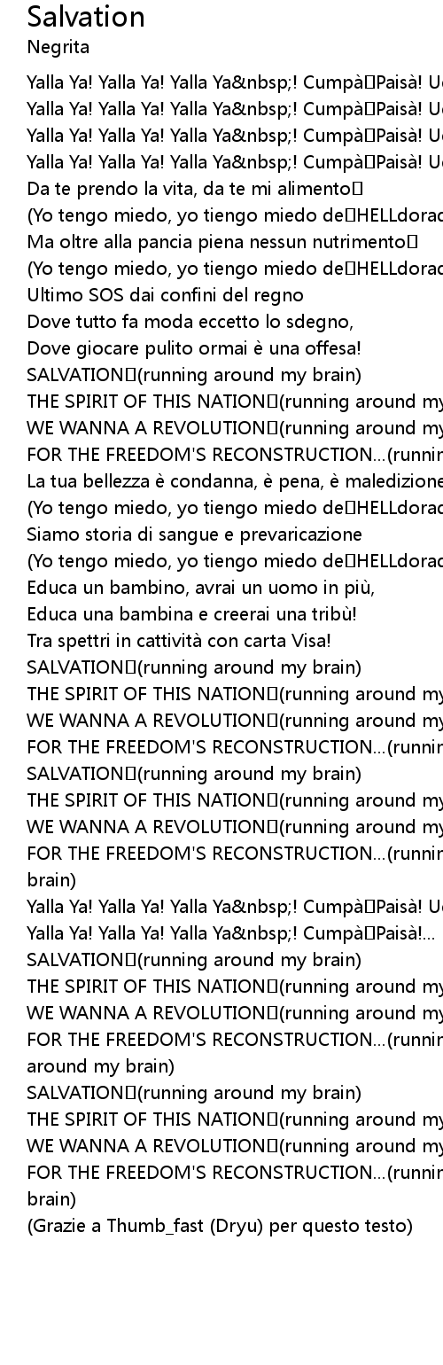 | Yalla Ya! Yalla Ya! Yalla Ya ! Cumpà Paisà! Uè! | |
