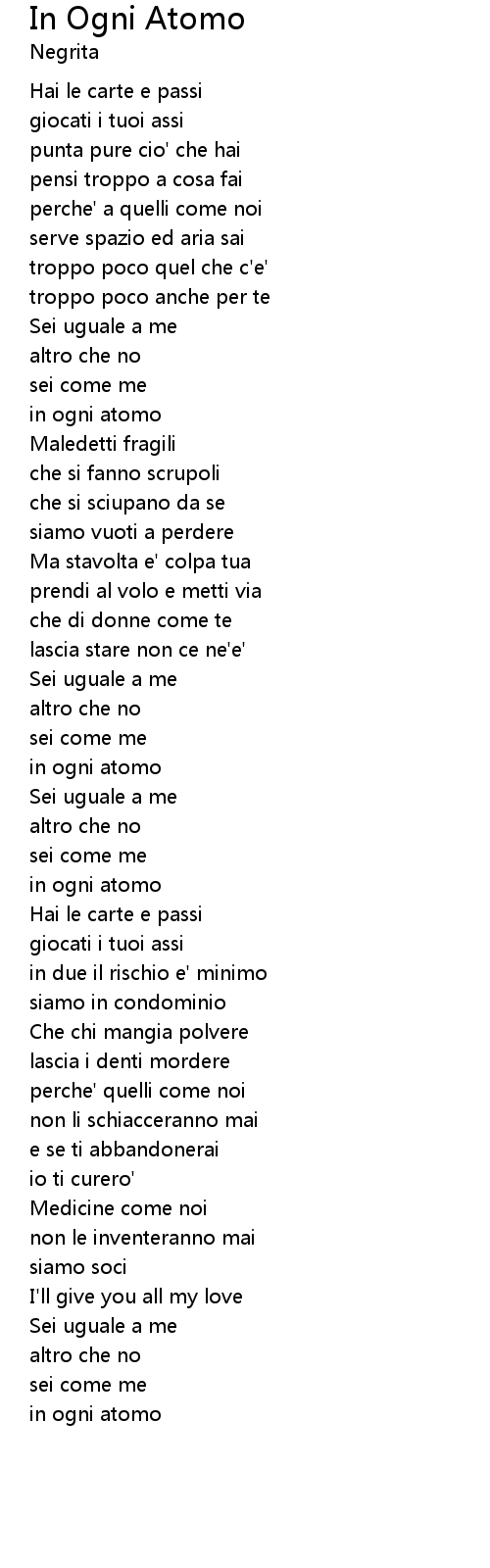 In Ogni Atomo 歌词