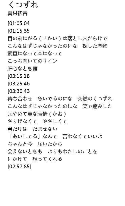 | [01:53.66] | 待ち合わせ 急いでるのにな 突然のくつずれ |