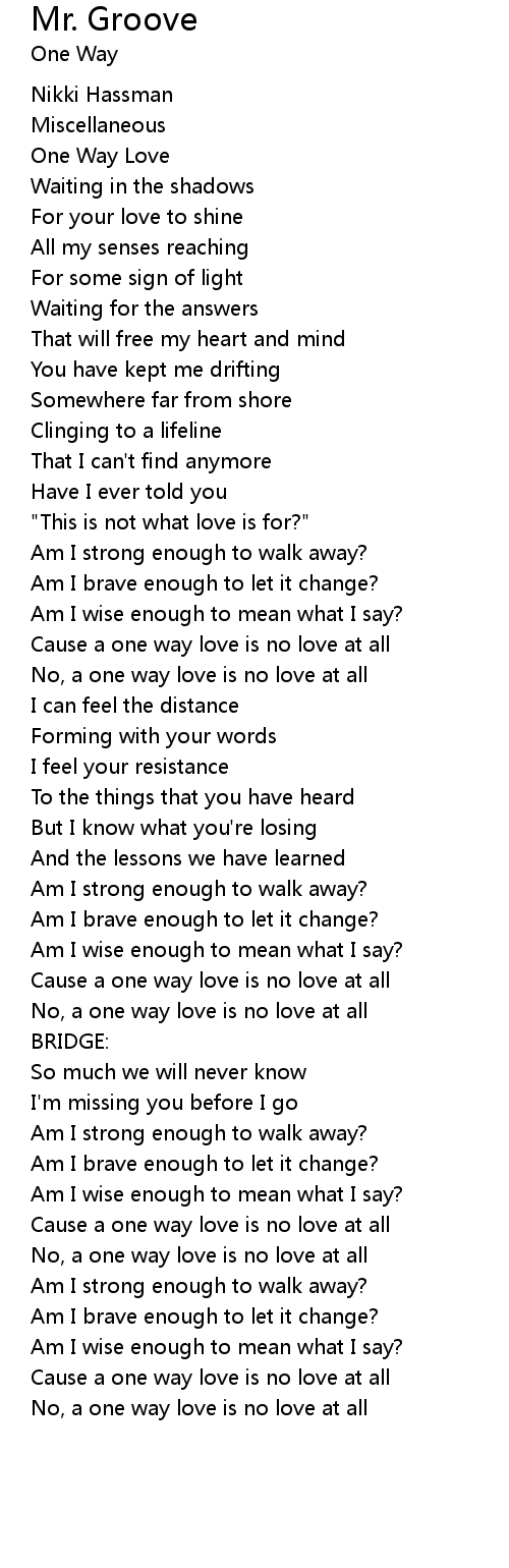 Cause a one way love is no love at all |