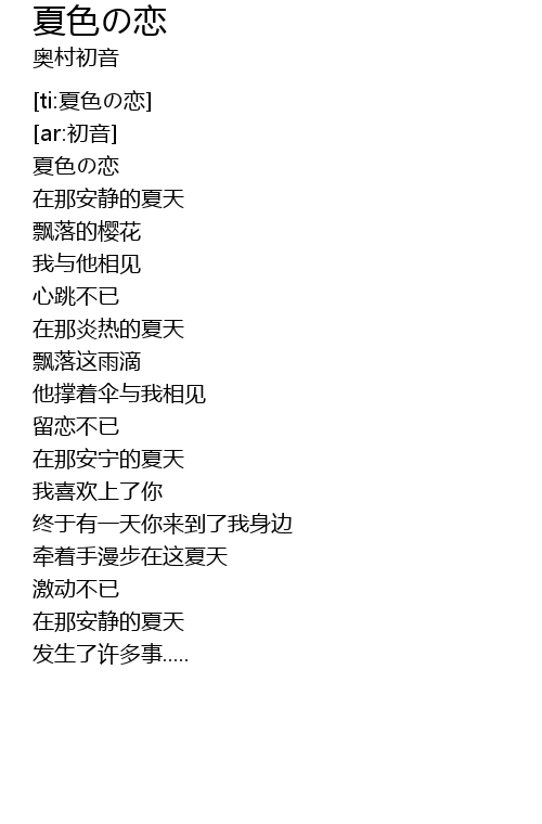 | [00:36.632] | zài nà yán rè de xià tiān |