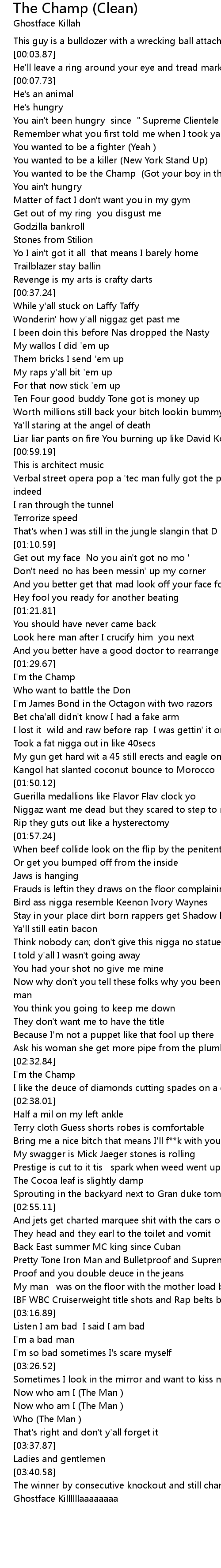 | [03:54.02] | Ghostface Killllllaaaaaaaa |