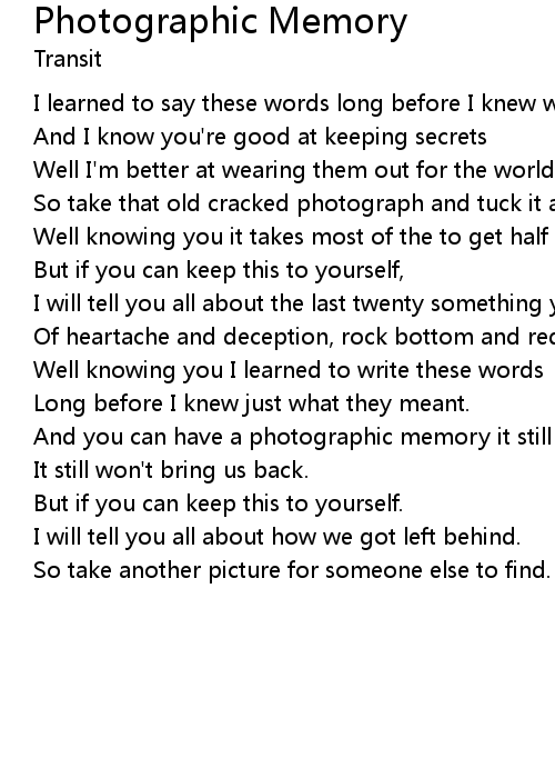 And you can have a photographic memory it still won't bring it back |