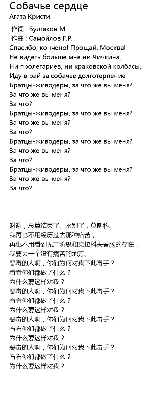 | 歌曲 | Собачье сердце |
