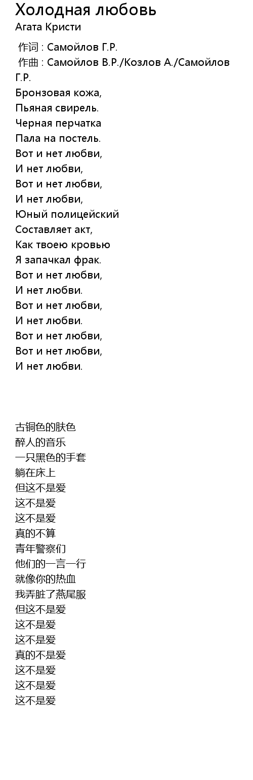| 歌曲 | Холодная любовь |
