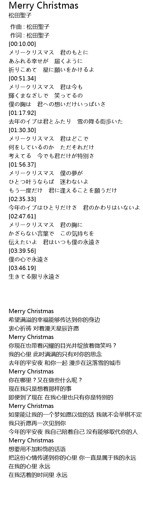 | [02:10.81] | メリークリスマス 僕の夢が |