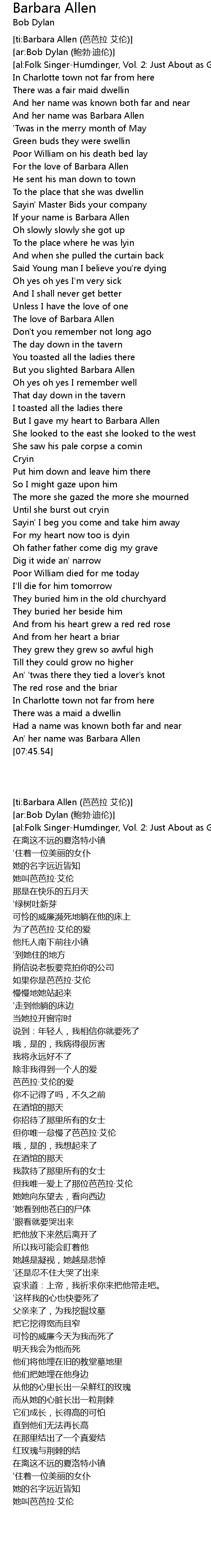 | [ti:Barbara Allen (芭芭拉 艾伦)] | |