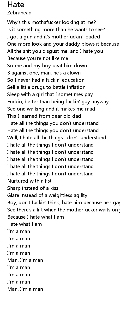 | Boy, don't fuckin' think, hate him because he's gay | |
