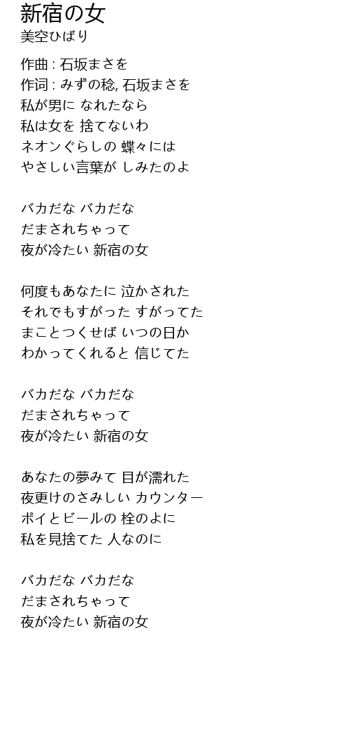 | 歌曲 | 新宿の女 |