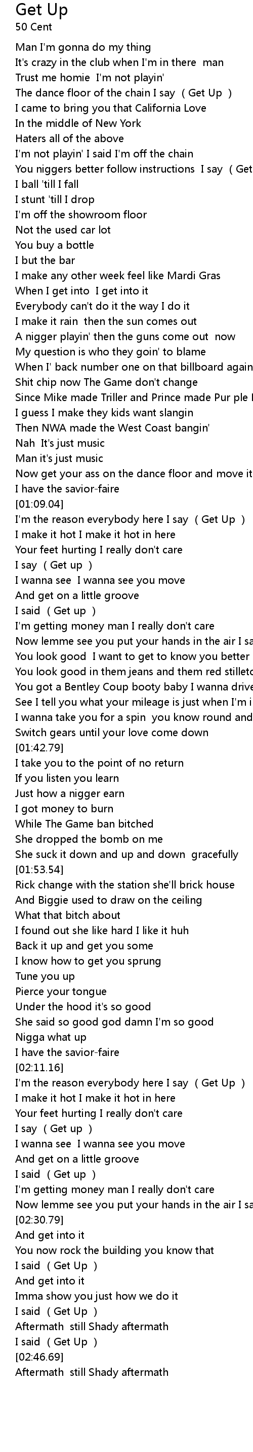 | [02:27.48] | Now lemme see you put your hands in the air I say Get Up |