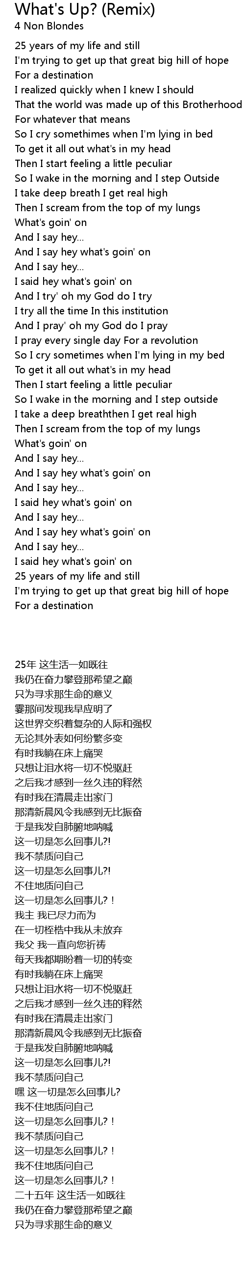 And I say hey what's goin' on |