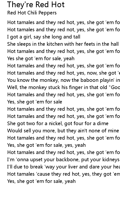 Hot tamales and they red hot, yes, she got 'em for sale #They too hot, boy# |