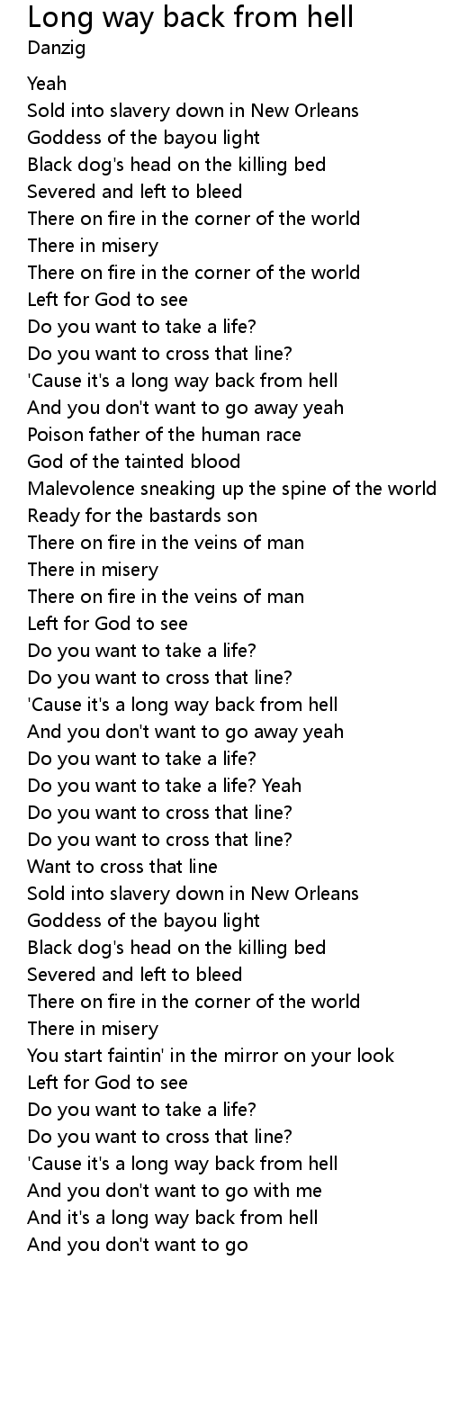 'Cause it's a long way back from hell |