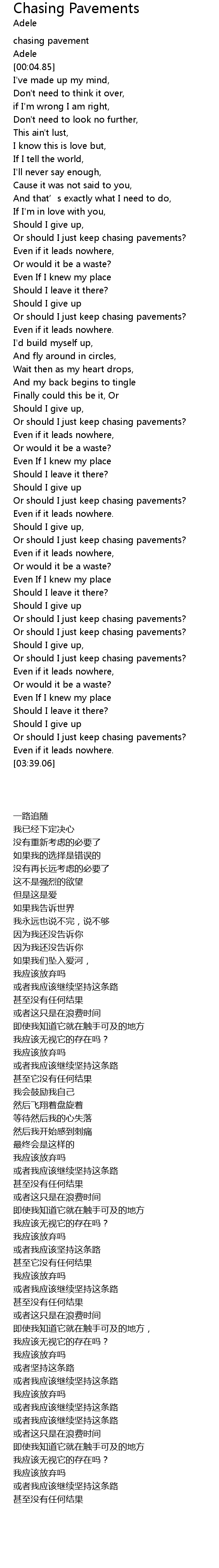| [03:04.51] | Or should I just keep chasing pavements? |