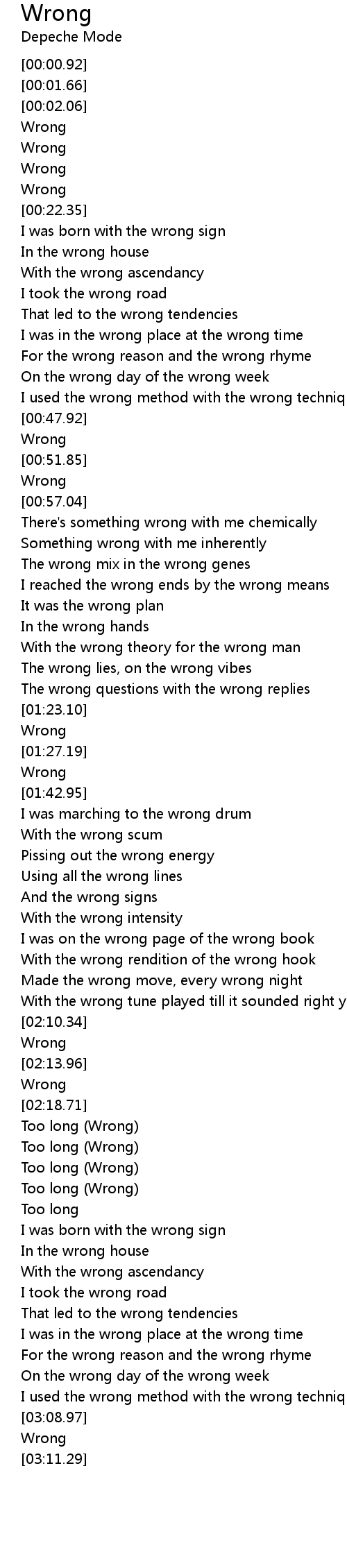 For the wrong reason and the wrong rhyme |