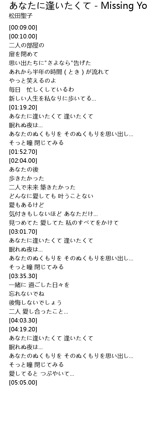 | [03:02.70] | あなたに逢いたくて 逢いたくて |