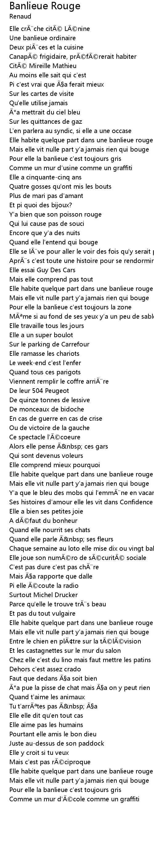 | Mais elle vit nulle part y'a jamais rien qui bouge | |
