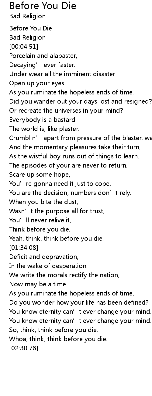 | [00:02.62] | Before You Die |