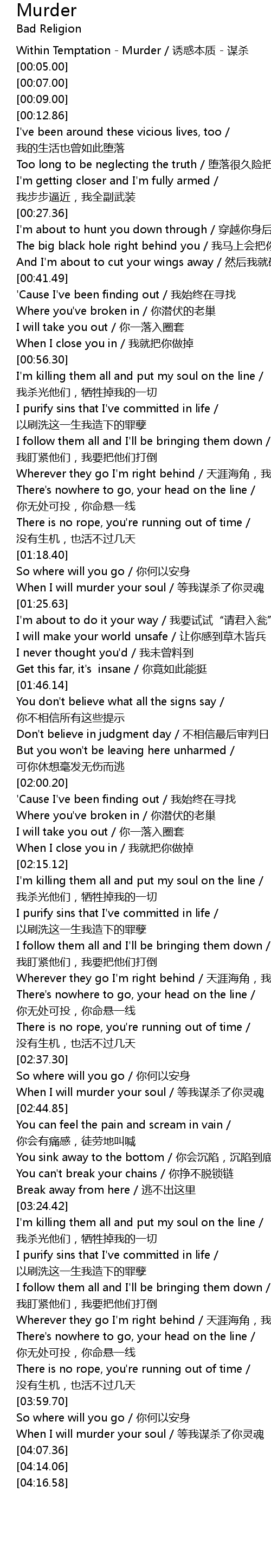 | [00:03.00] | Within Temptation Murder yòu huò běn zhì móu shā |