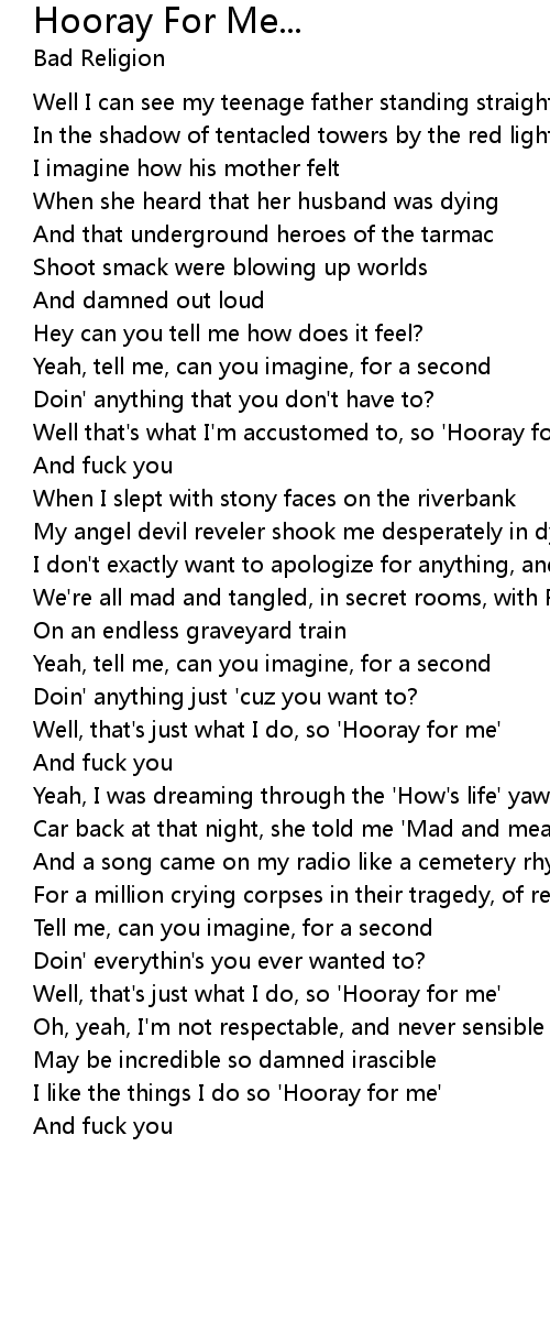 Well, that's just what I do, so 'Hooray for me' |
