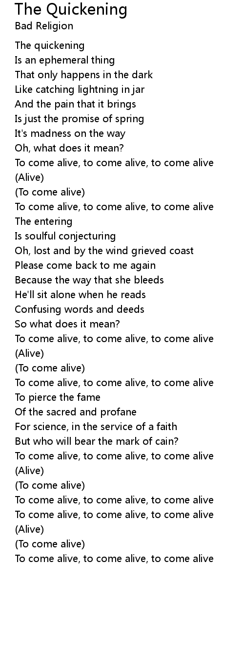 To come alive, to come alive, to come alive |
