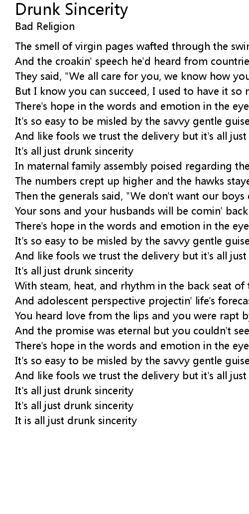And like fools we trust the delivery but it's all just drunk sincerity |