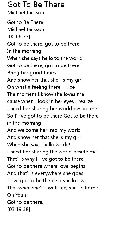 | [01:18.80] | So I' ve got to be there Got to be there |