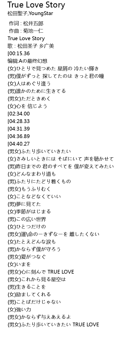 | [00:00.10] | True Love Story |