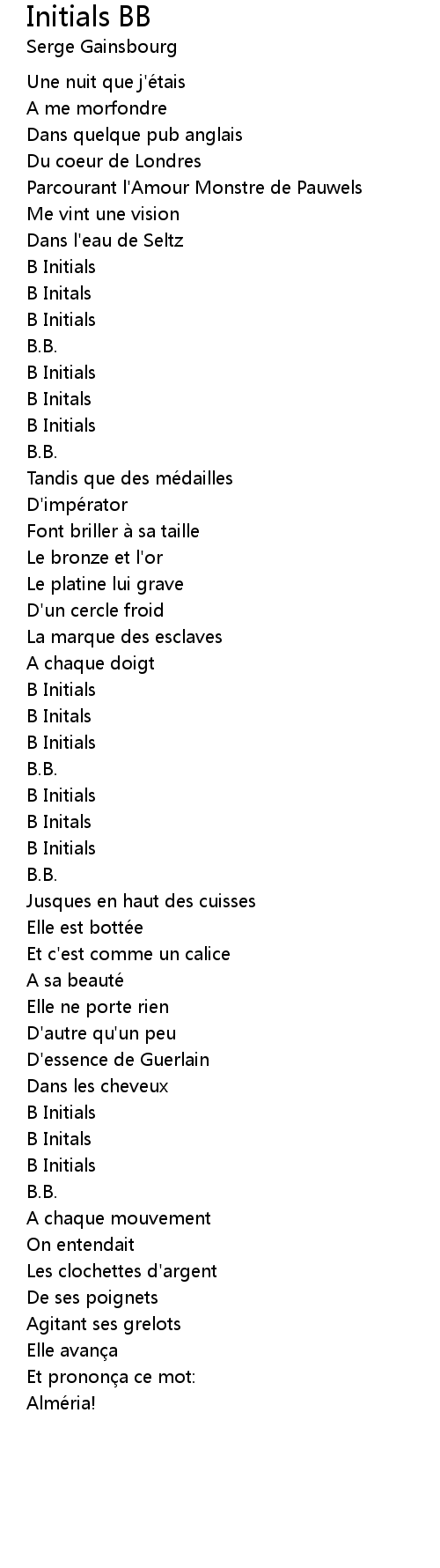 | 歌曲 | Initials BB |