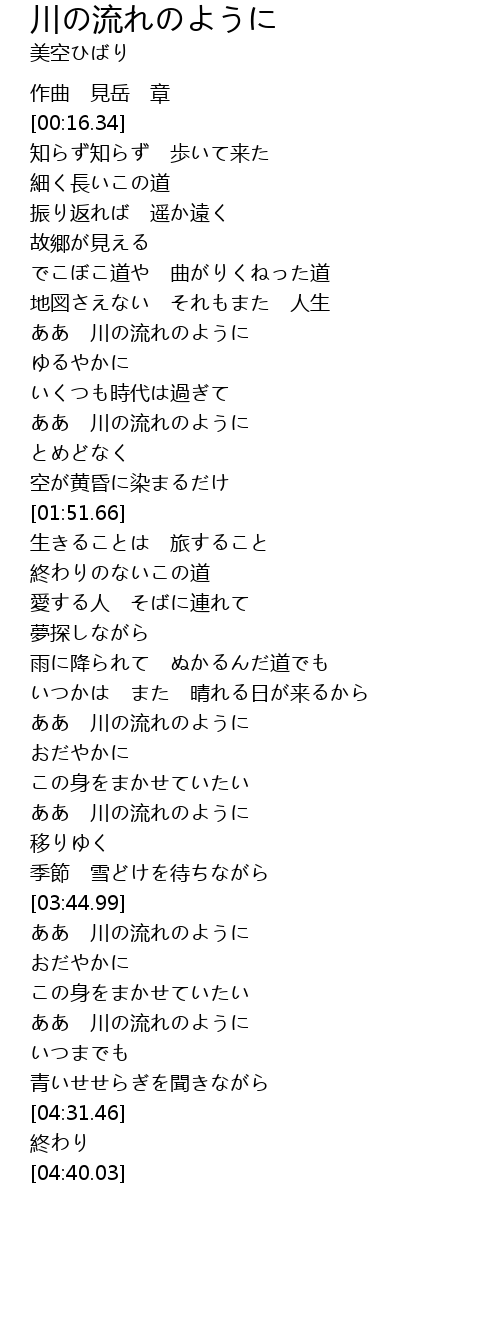 | [04:21.63] | 青いせせらぎを聞きながら |