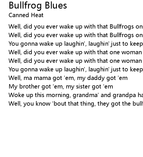 Well, you know 'bout that thing, they got the bullfrog blues |