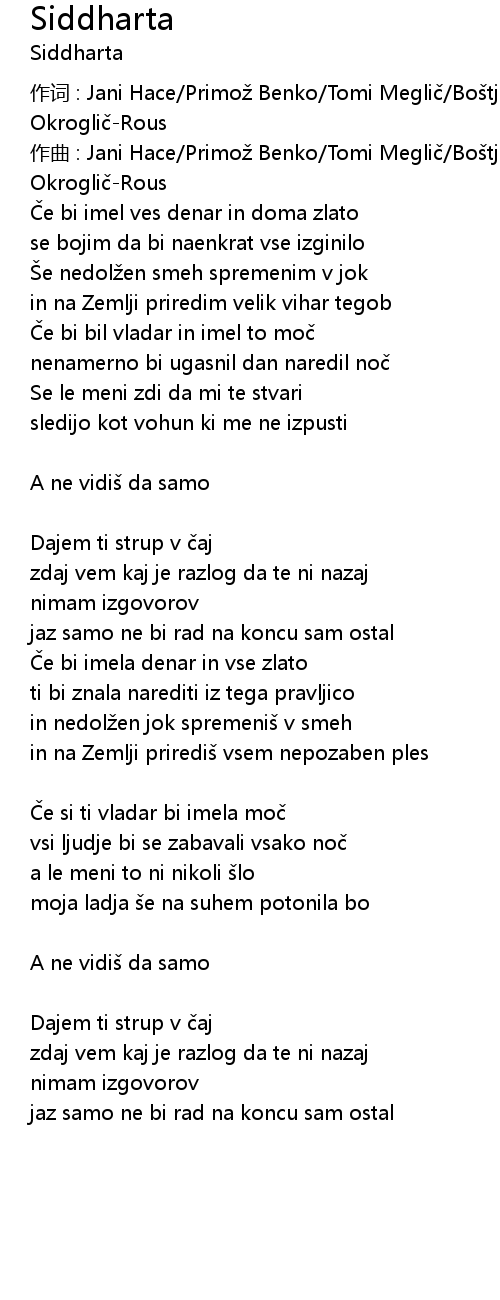 | 作词 : Jani Hace/Primož Benko/Tomi Meglič/Boštjan Meglič/Tomaž Okroglič-Rous | |