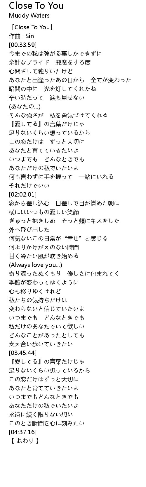 | [02:31.41] | ぎゅっと抱きしめ そっと頬にキスをした |