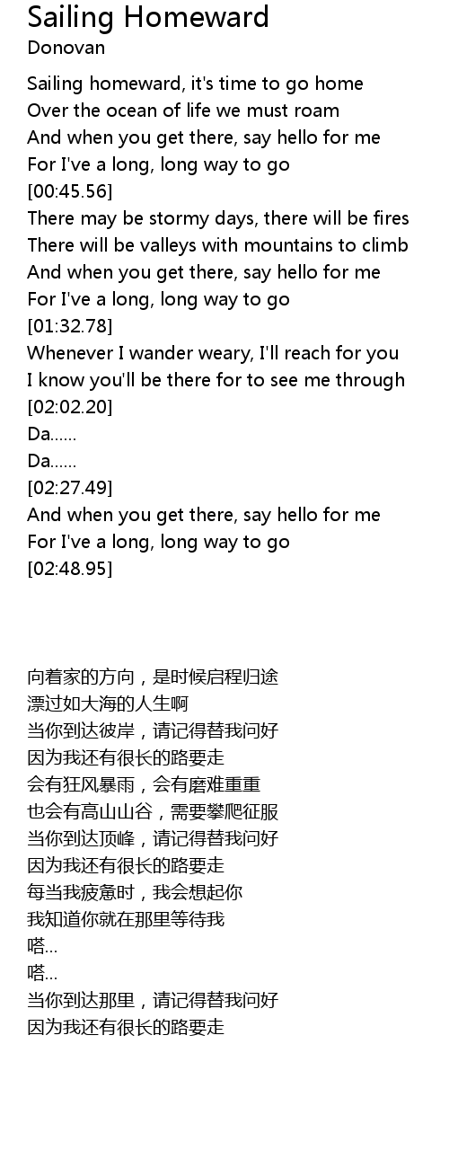 Sailing homeward, it's time to go home |
