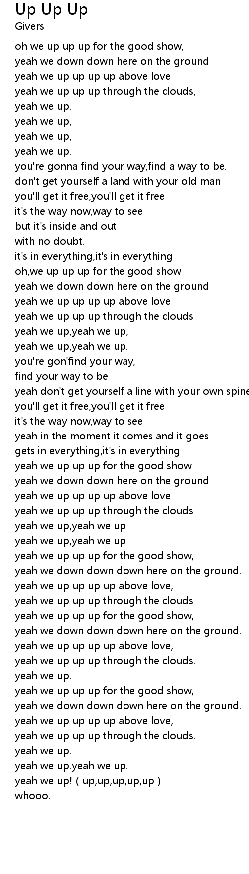 | [04:17.148] | yeah we up! up, up, up, up, up |