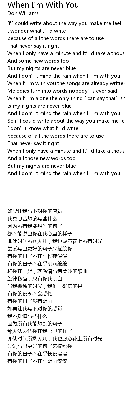 | [00:56.70] | When I' m with you the songs are already written |