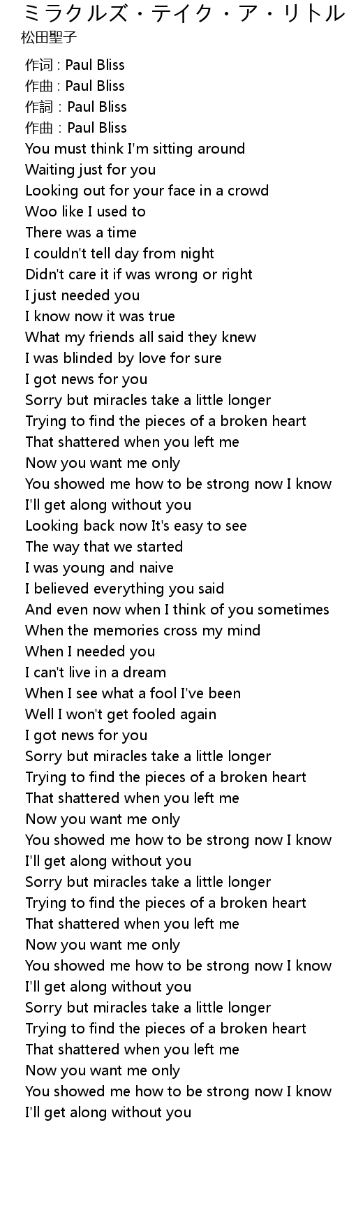 | 歌曲 | ミラクルズ・テイク・ア・リトル・ロンガー |