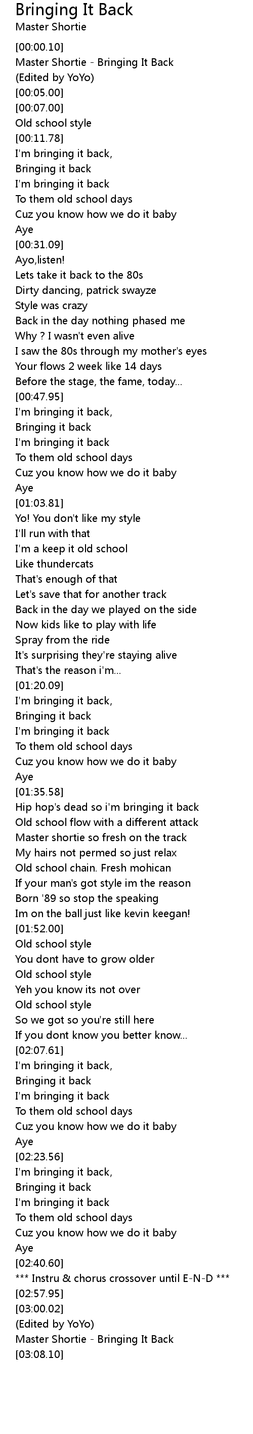 [03:05.24] Master Shortie - Bringing It Back