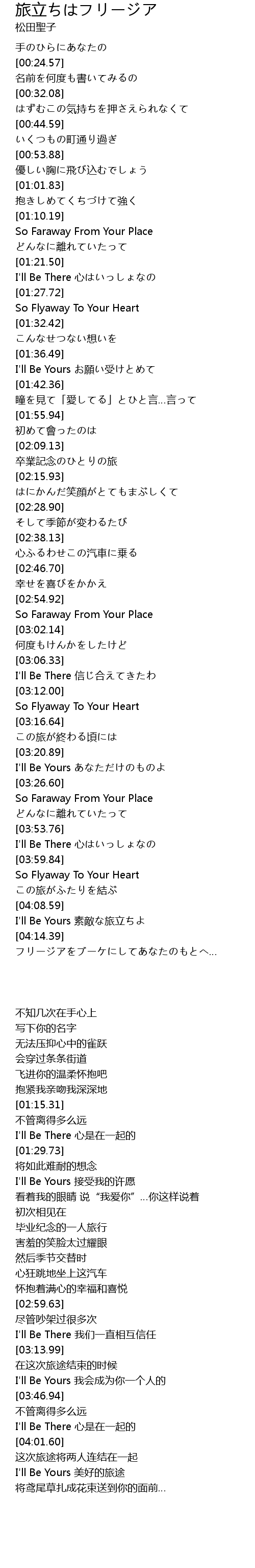 | [04:17.08] | フリージアをブーケにしてあなたのもとへ… |