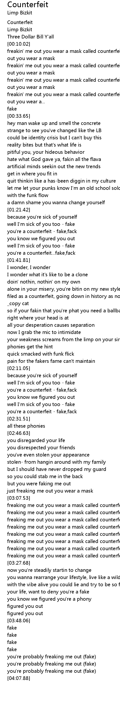 [00:17.68] freakin' me out you wear a mask called counterfeit, you're freakin' me out you wear a mask