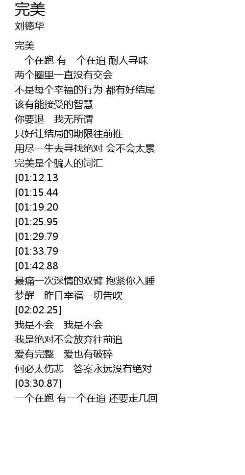 | [02:45.15][01:15.44] | 人性的可爱就是不能完美 |