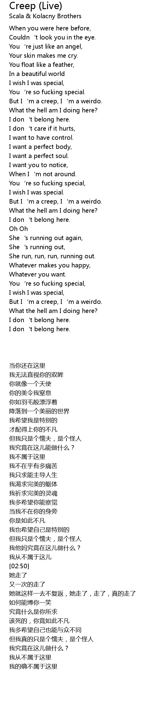 | [02:27] | But I‘m a creep, I‘m a weirdo. |