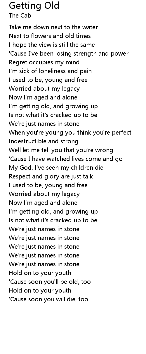 'Cause soon you'll be old, too |