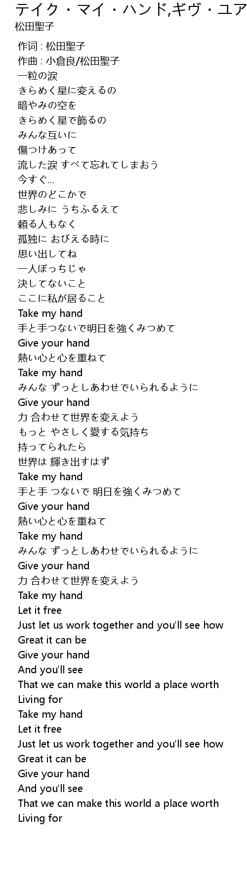 | 歌曲 | テイク・マイ・ハンド,ギヴ・ユア・ハンド |