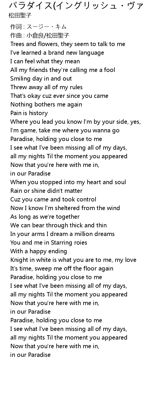 | 歌曲 | パラダイス(イングリッシュ・ヴァージョン) |