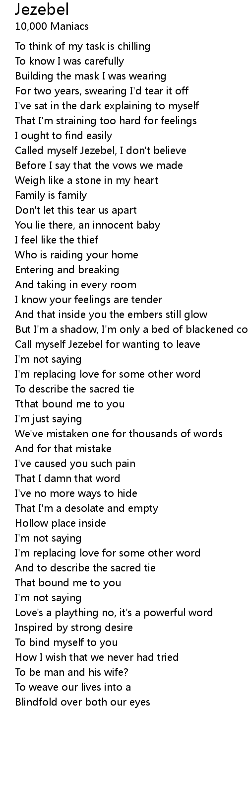 Call myself Jezebel for wanting to leave |