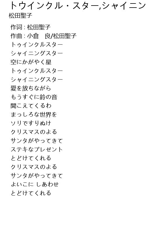 | 歌曲 | トウインクル・スター,シャイニング・スター |