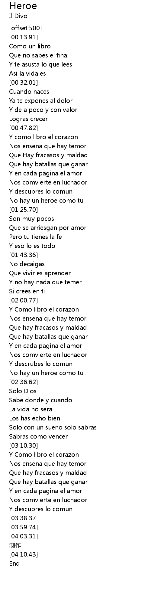 | [03:46.99][03:38.37] | No hay un heroe como tu. |